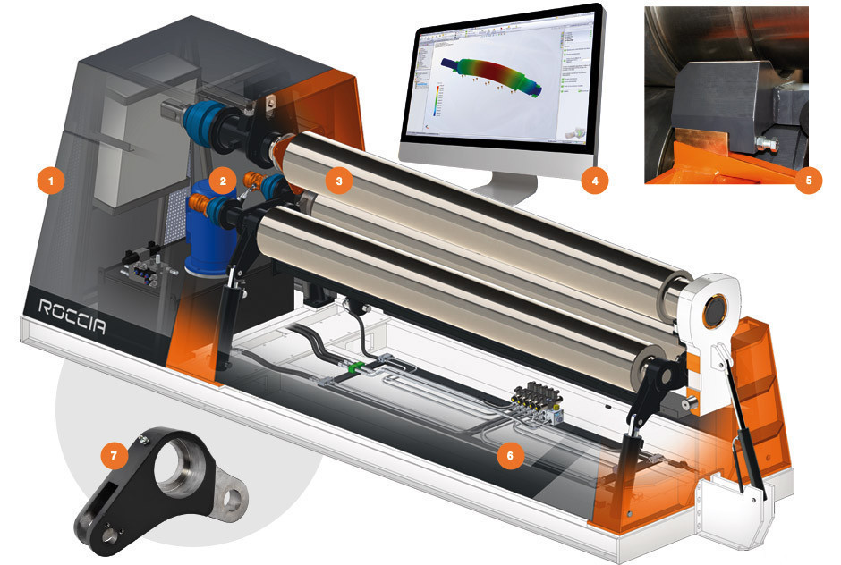 Что бы достигнуть наименьшего диаметра изгиба, ROCCIA srl фокусируется на правильной точки контакта между боковыми и верхним валами. Это не вопрос системы, это – только вопрос знания и опыта.